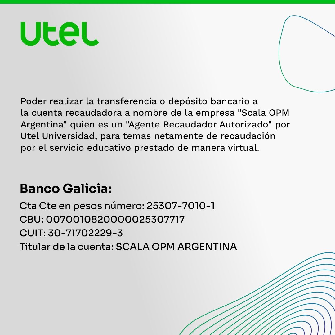 Transferencia y/o depósito oficial Utel: Ver Certificación bancaria