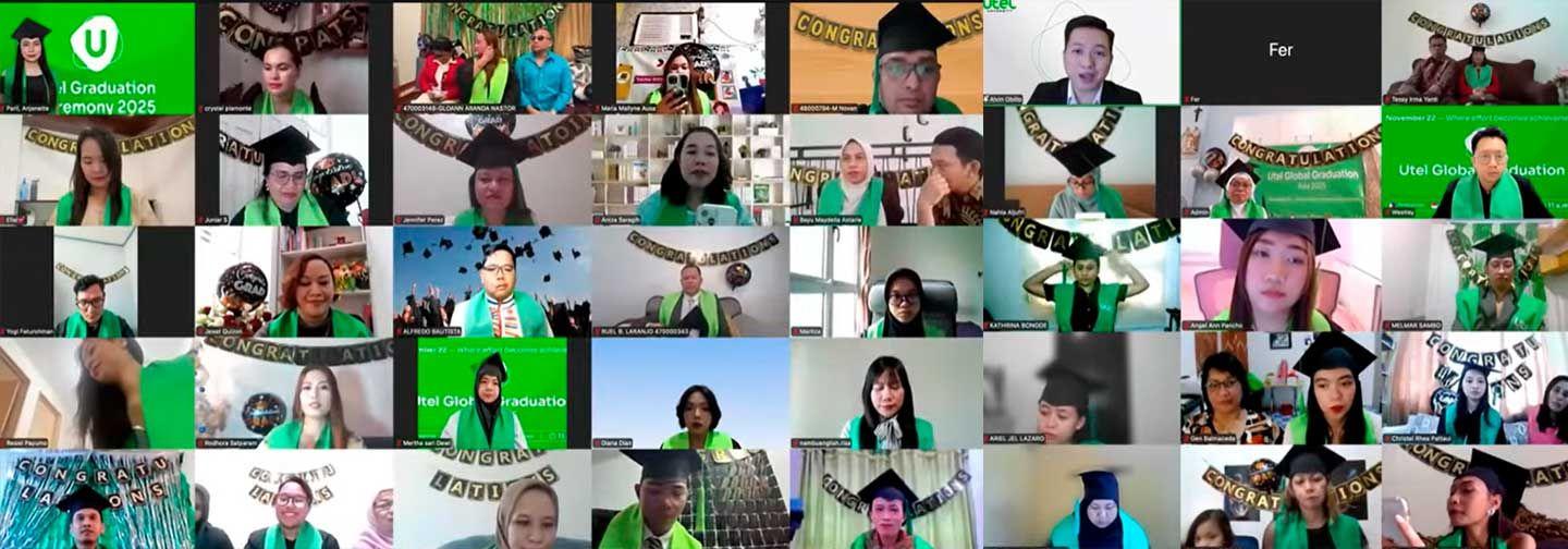 Entre sonrisas, cámaras encendidas y mensajes en el chat, los graduados compartieron junto a sus familias el inicio de la ceremonia, convirtiendo sus espacios de casa en un escenario de celebración. Desde Utel, acompañamos con orgullo a la comunidad de Filipinas e Indonesia con este logro que se difundió también a través de redes sociales.